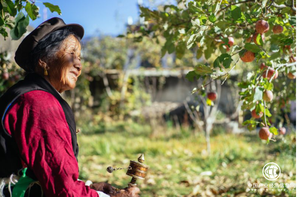 四川甘孜鄉城,藏族老奶奶每天都來照看蘋果樹。