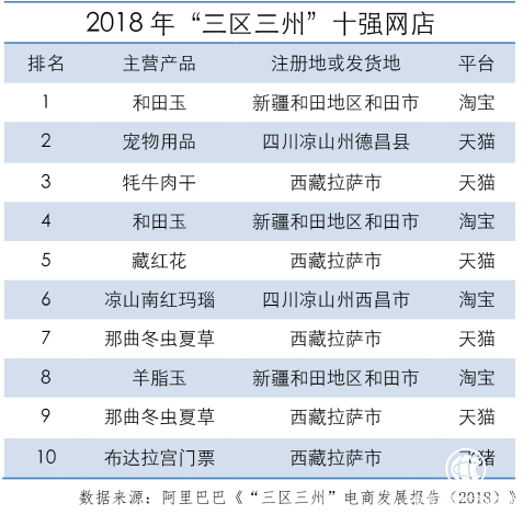 阿里巴巴發布的《“三區三州”電商發展報告(2018)》顯示,在“三區三州”209個區縣(含縣級市,下同),均已在阿里平臺發展電商經濟。