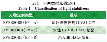 表1 不同類型光穩定劑