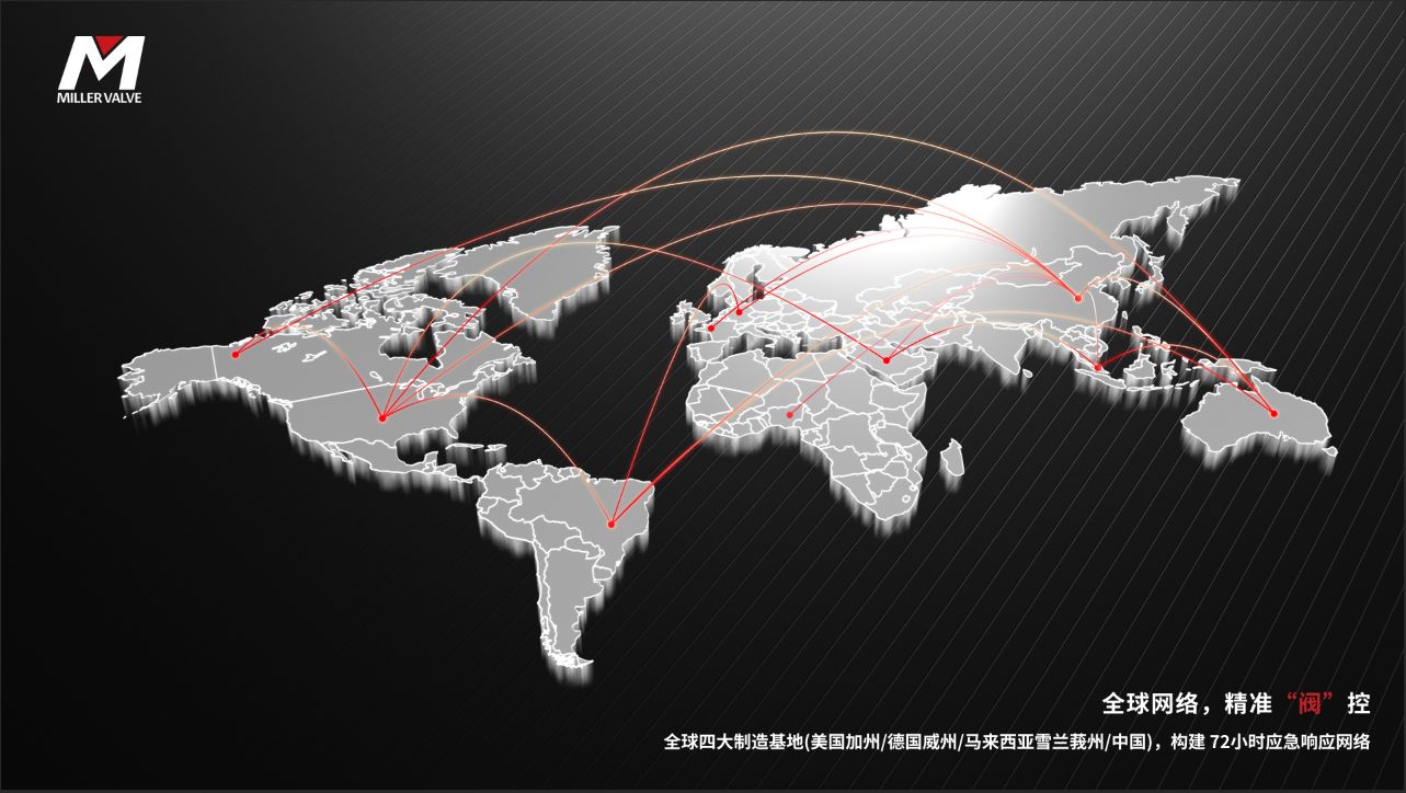 米勒閥門以全球視野構建高效協同的網絡布局。美國、德國、馬來西亞、中國四大制造基地與全球12個銷售中心緊密聯動,匯聚2000余名精英,確保我們對全球任何角落的需求都能做出迅捷響應。