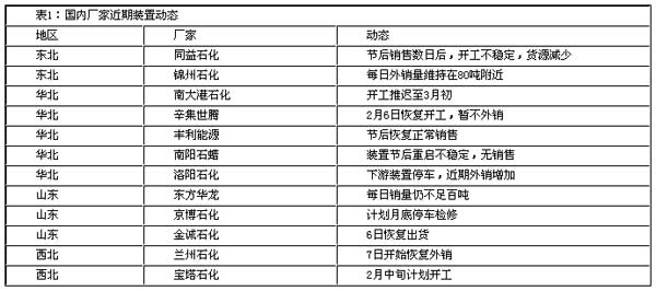 春節期間國內市場多維持高位穩定,節后商家多開始關注裝置開工的變化,近期國內廠家動態如下表: