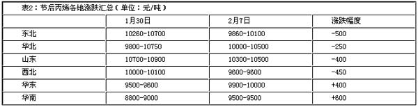 就目前各地市場價格來看,聚丙烯開工仍較為困難,目前山東地區粉料廠家多數仍處于停車狀態,等待丙烯的回落;環氧類隨著節后的漲價以及丙烯的回調,利潤理論值基本回歸至3000元/噸以上,但開工未有明顯的變化,對市場的支持暫有限。