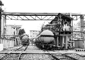 進入7月,浙江地區燒堿市場走勢平穩,巨化30%離子膜堿送到價報700~720元/噸。目前,巨化離子膜燒堿裝置高負荷運行,日產燒堿1200多噸,銷售平穩無庫存。 圖為員工正在灌裝液堿。(本報記者 王孝弟 攝)
