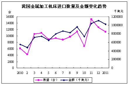 我國金屬加工機床進口數量及金額變化趨勢
