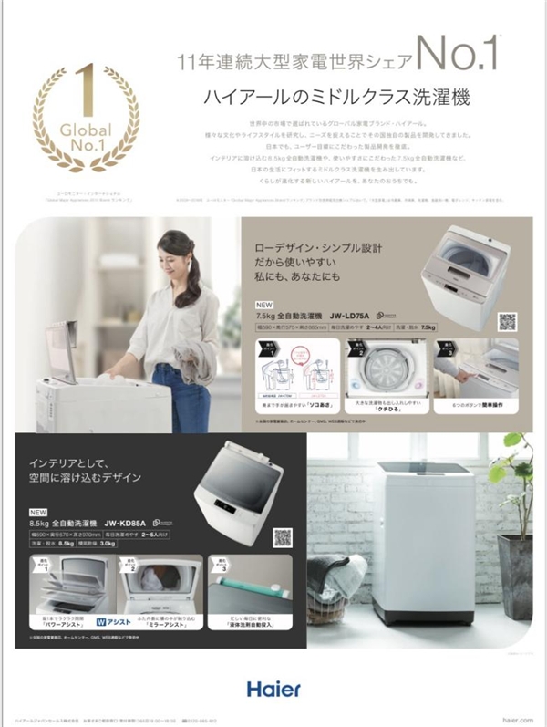 作為中國品牌全球化的先行者,海爾智家已連續11年蟬聯大型家電榜首,深受全球用戶喜愛。在日本,海爾洗衣機將繼續深耕用戶痛點,不斷升級產品及洗衣場景,滿足更多日本家庭的需要。