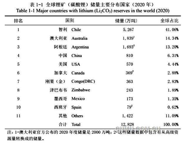中國地質調查局發布的《全球鋰、鈷、鎳、錫、鉀鹽礦產資源儲量評估報告(2021)》顯示,截至2020年,全球鋰礦(碳酸鋰當量,下同)儲量為1.28億噸,資源量為3.49億噸,主要分布在智利、澳大利亞、阿根廷、玻利維亞等國。