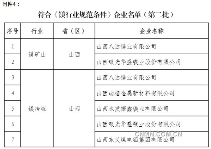 4.符合《鎂行業規范條件》企業名單(第二批)