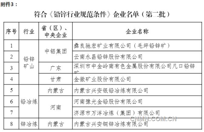 3.符合《鉛鋅行業規范條件》企業名單(第二批)