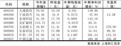事實上,今年以來國家繼續對稀土礦實行開采總量控制,通過媒體大量報道,相關個股的投資價值被進一步挖掘。7月份以來,包鋼稀土、廣晟有色、橫店東磁等公司股價均昂揚向上。