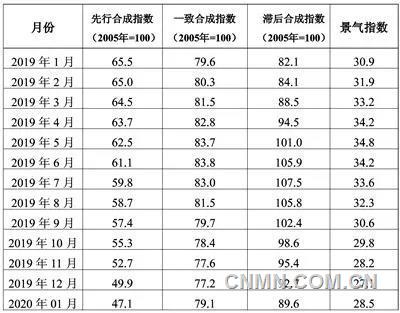中色鋁冶煉產業景氣指數監測結果顯示,2020年1月,景氣指數為28.5,環比上升1.4點;先行合成指數為47.1,環比回落2.8點。近13個月,中色鋁冶煉產業景氣指數見表1。模型監測結果顯示,1月份鋁冶煉行業延續上月走勢,仍處“偏冷”區間,與此同時先行合成指數延續回落態勢,加之疫情對經濟及行業的負面影響尚未體現在1月份模型中,可見行業景氣度回暖壓力猶存。