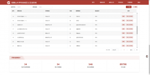 目前已圓滿完成三校課程互選。本次課程互選注冊學生89798名,選課人次2357人次,累計選課數量546門次。