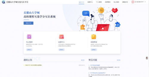 學生登錄岳麓山大學城互選互認平臺網址,進入門戶首頁,可查看選課通知公告。