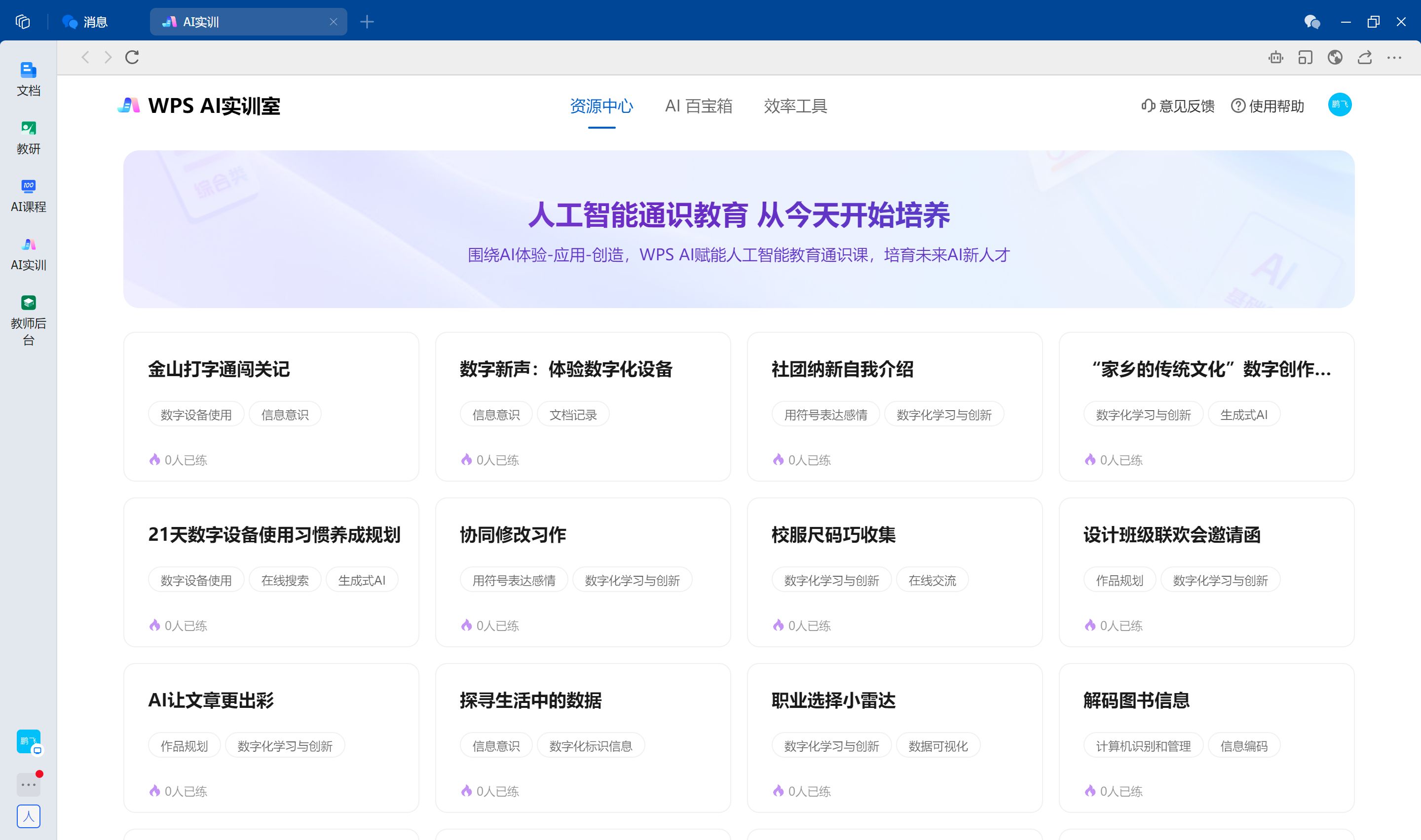 「WPS 人工智能實訓室提供內容豐富的課程資源」