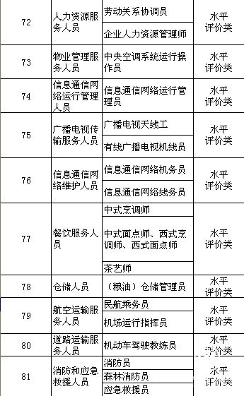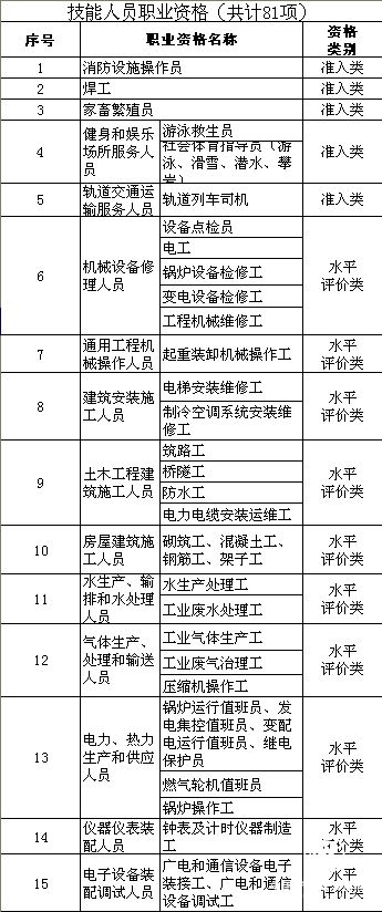 附:國家職業資格目錄中的81項技能人員職業資格。