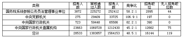 中央黨群百里挑一,中央國家行政機關直屬機構低于平均競爭比