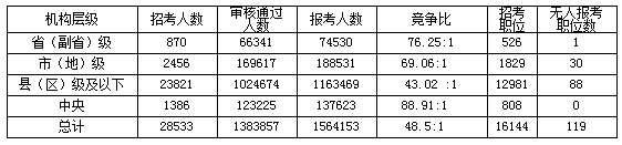 中央與縣級職位競爭力度“反差”大,考生偏向中央職位