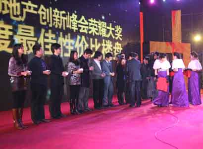 同時,經過專家評審、網友投票等綜合評定,12項年度地產大獎在現場榮耀揭曉,這12項大獎包括:年度品牌地產、年度責任地產、年度關注大獎、年度人氣口碑大獎、年度搜索大獎、年度高端物業、年度最佳性價比樓盤、年度低碳樓盤、年度宜居樓盤、年度民心工程、年度新銳地產等獎項。