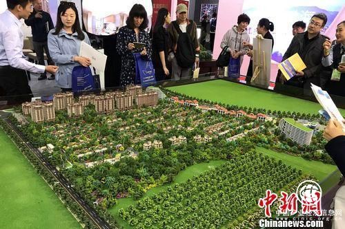資料圖:民眾在2017年北京春季房展會上的某樓盤展臺咨詢。中新網記者 程春雨 攝