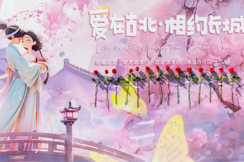 同時,在游客服務中心,一面特別的打卡墻也吸引了眾多游客前來打卡。只需唱一句帶有“愛”字的歌,并關注古北水鎮的官方社交媒體賬號,就能免費領取一支精美的發光玫瑰。限量13142支玫瑰,寓意著一生一世的愛情,為游客們的愛情增添了一抹亮色。