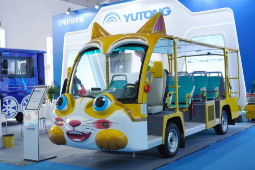 而一旁的“小橘貓”等特殊造型觀光車更是成為拍照打卡熱點。一位來自海南的景區負責人贊嘆:“宇通的定制化設計能力太強了!這些車本身就是‘景點’,能直接提升游客的消費意愿。”