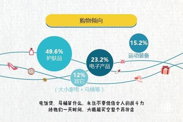 相反的是,調查顯示,境外自由行消費主要仍然集中在美國、日本、香港等地區,近一半的人境外購物更傾向于護膚品,23.2%的人會在旅行中購買電子產品。所以,千萬不要小看女人的購買力哦~她們可能會買空整個藥妝店。
