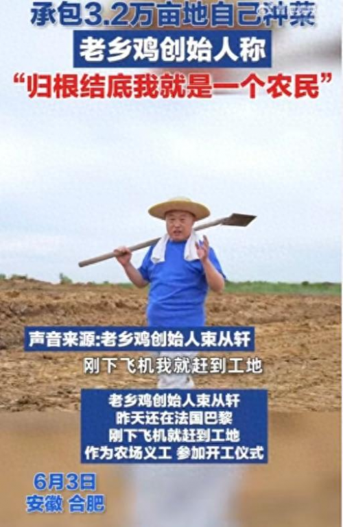 近日,老鄉雞的創始人束從軒再次引起了公眾的關注——承包3.2萬畝土地,開始種植蔬菜,以確保食材的品質和口感。