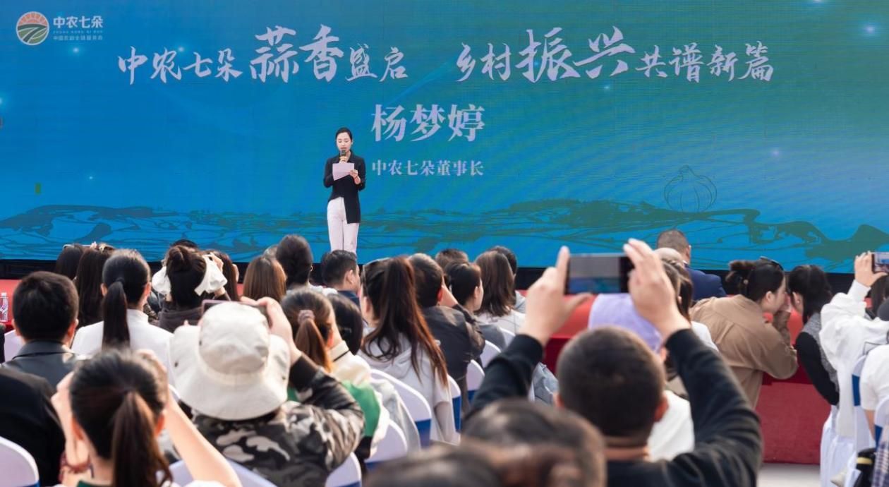 中農七朵董事長楊夢婷在活動中致辭強調,中農七朵一直致力于大蒜產業的創新發展,緊跟鄉村振興戰略,通過政企聯合、企業聯合推動金鄉大蒜產業邁向新高度。中農七朵積極引入先進技術和管理模式,與航天育種研究合作,提高大蒜產量和品質;加大深加工研發力度,優化營銷策略,構建穩定的銷售網絡。