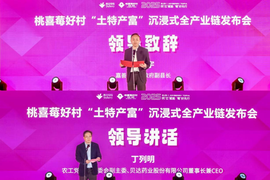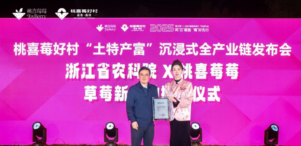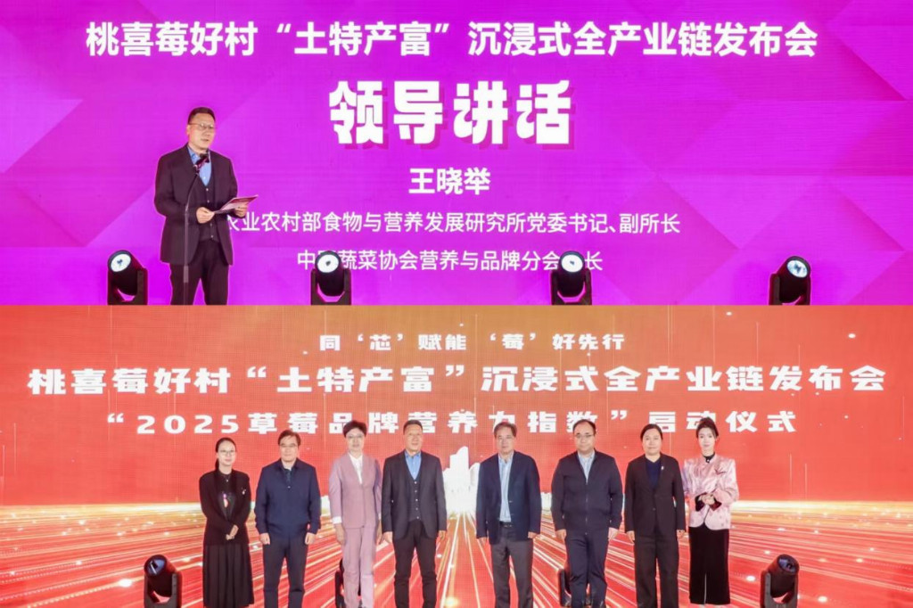 2025年10月23日晚,在浙江省嘉善縣“桃喜莓好村”,一場以“同‘芯’賦能 ‘莓’好先行”為主題的“土特產富”沉浸式全產業鏈成果發布會成功舉行。活動集中展示了桃喜莓莓以一顆草莓為紐帶、貫通產學研銷、探索“IP賦能+產村融合+青年入鄉”的鄉村運營的創新實踐,并正式發布了由農業農村部食物與營養發展研究所牽頭、中國蔬菜協會營養與品牌分會具體推動的國內首個“草莓品牌營養力指數”,為特色農產品價值提升和品牌建設提供了科學標尺與示范樣板,是科技賦能鄉村振興的一次生動實踐。
