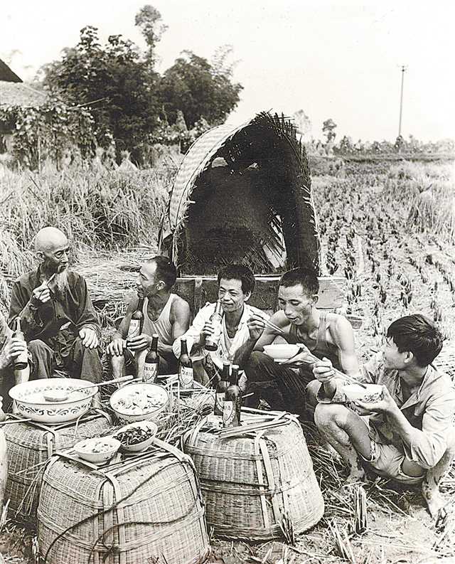 1983年,農民勞作間隙在田間吃飯、休息。(資料圖片)