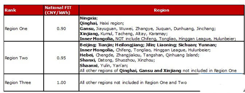 基于不同地區的光照條件不同,新的全國上網電價將全國西藏除外的地區劃分為三類,詳見下面的表格: