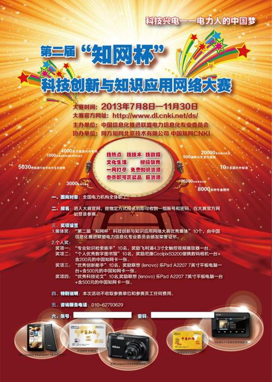 由中國信息化推進聯盟電力信息化專業委員會主辦,中國知網協辦的電力行業第二屆“知網杯”科技創新與知識應用網絡大賽以下簡稱大賽正式啟動。大賽官網http://www.dl.cnki.net/ds/。2012年舉辦的首屆科技興電系列活動—“知網杯”電力職工專業知識網絡應用大賽得到了電力職工的積極響應和電力企業的一致好評,在總結上一屆大賽經驗的基礎上,經積極籌備,2013年6月21日正式啟動科技興電系列活動—第二屆“知網杯”科技創新與知識應用網絡大賽。