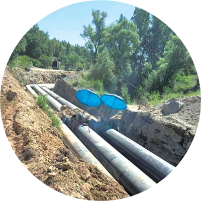 匯能控股集團蒙南電廠鋪設供熱管道施工現場。