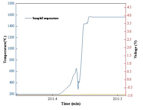 對圖2溫度數據及圖3產氣速率、產氣量數據進行分析后發現,該電池熱失控十分劇烈,并且放大樣品溫度曲線可以發現,整個熱失控過程從開始到結束持續不到3s,就完成了1300℃以上的溫升,溫升速率達到了200000℃/min以上。同時,觀察氣體數據可以發現,在熱失控過程中最大產氣速率達到15000L/min以上,展現了鋰電池燃爆時極強的沖擊力。