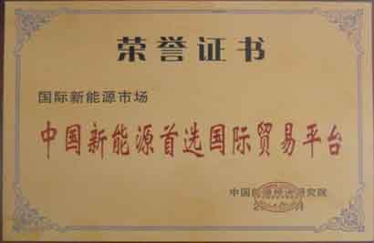 國際新能源市場榮獲“中國新能源首選國際貿易平臺”獎項