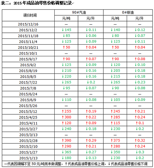 不過,鑒于12月15日調價窗口開啟而國家暫緩調價的先例,本年底最后一次下調窗口也存在再次暫緩調價的可能。上次調價周期內,國際原油價格跌至40美元/桶以下,發改委秉承在低油價時,保持國內成品油價格基本穩定的宗旨,暫緩調整成品油零售價格(當時理論下調幅度達到200元/噸);這有利于抑制石油消費的過快增長和能源結構調整,促進環境保護,改善空氣質量;與此同時國家也在抓緊完善新形勢下成品油價格形成機制。而此輪調價周期內所面臨的內外部環境與上輪相似,因此不排除發改委繼續暫緩下調油價。