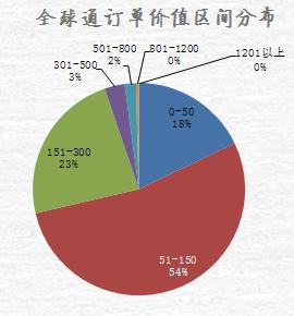 移動全球通禮品訂單價值:0-50元的占18%,51-150元的占23%,51-150元的占54%。