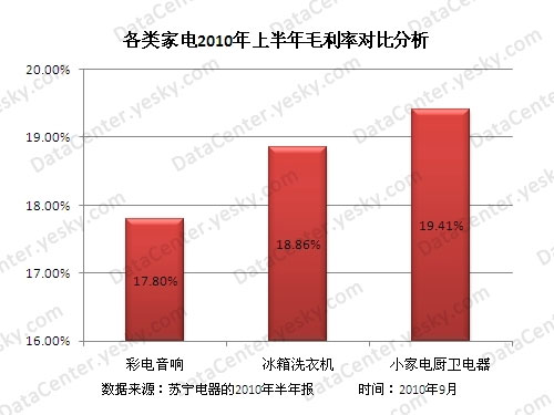 各類家電2010年上半年毛利率對比分析