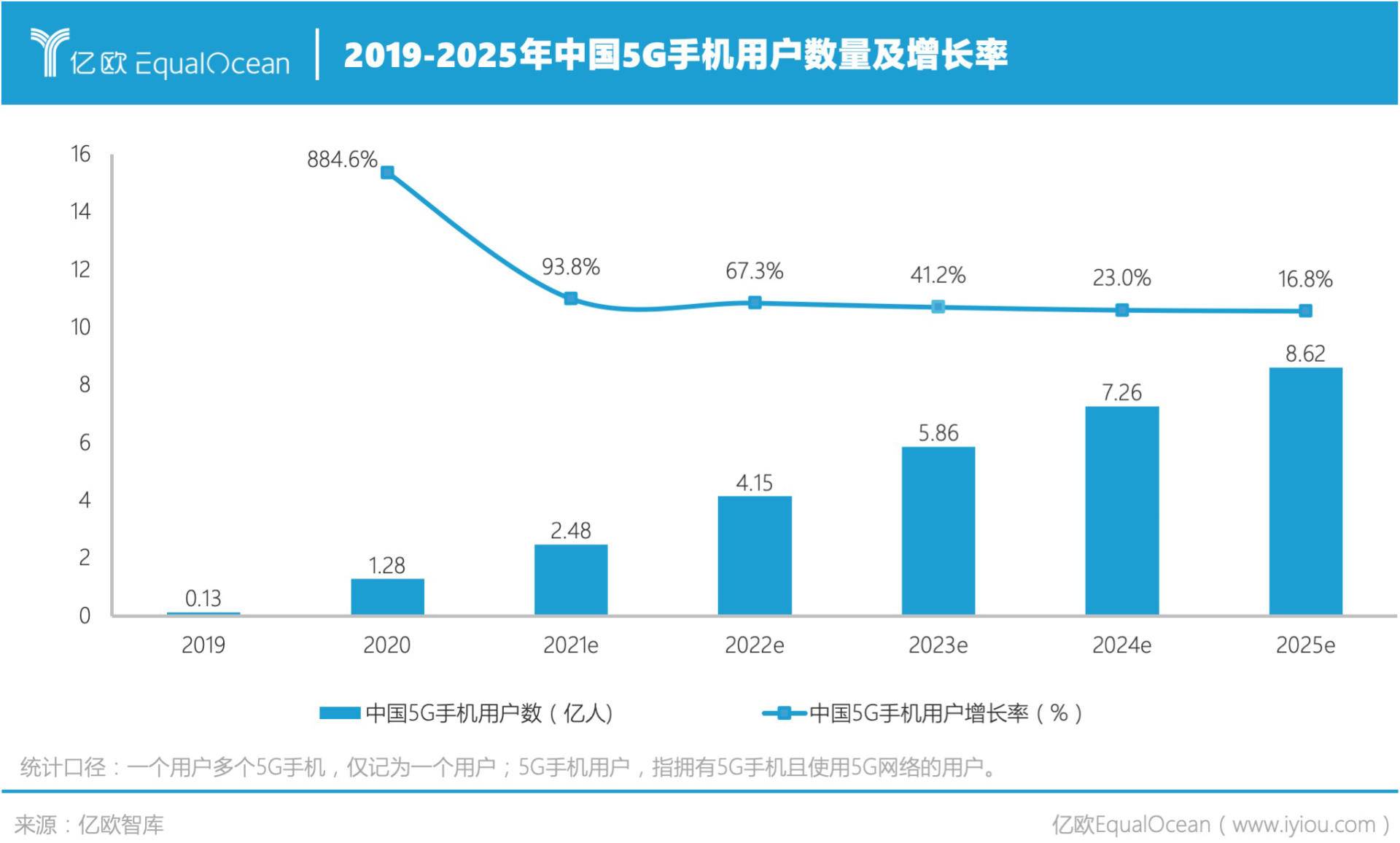 2019年6月,中國5G牌照正式發放,這標志著中國物聯網的發展進入了新階段。億歐智庫數據顯示,2020年中國5G手機用戶達到了1.28億人,普及速度超過此前的3G和4G。3G和4G的普及,帶動了移動互聯網的快速發展;5G的快速普及,將推動中國全面進入萬物互聯時代。
