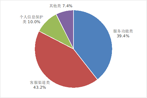 2022年第三季度,互聯網信息服務投訴平臺共收到互聯網用戶投訴39.36萬件。其中,客服渠道類投訴17.01萬件,占比43.2%;服務功能類投訴15.50萬件,占比39.4%;個人信息保護類投訴3.92萬件,占比10.0%;其他類投訴2.93萬件,占比 7.4%。在接入平臺的150家互聯網企業中,方正寬帶、中公教育、虎撲等5家企業投訴處理及時率未達到95%的指標要求(詳見附件2),小紅書、同程藝龍、貝殼找房、去哪兒網等投訴量增長較快,工業和信息化部已督促相關企業改進服務,解決用戶反映的問題。