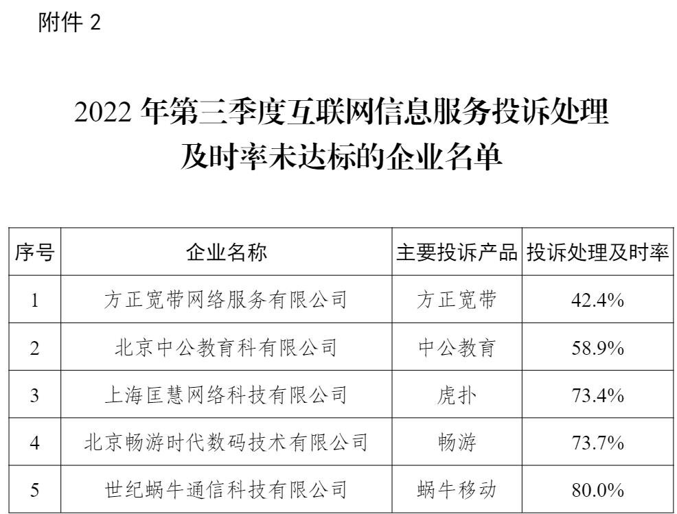 2. 2022年第三季度互聯網信息服務投訴處理及時率未達標的企業名單
