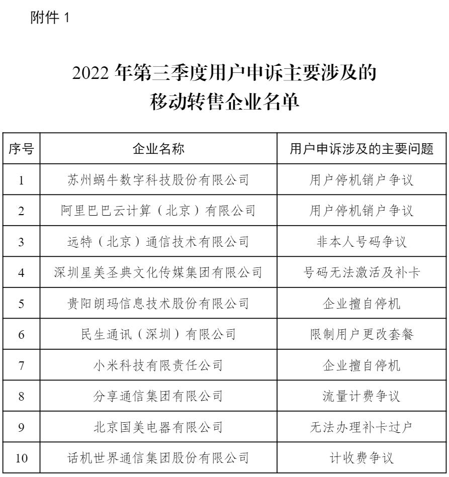1. 2022年第三季度用戶申訴主要涉及的移動轉售企業名單