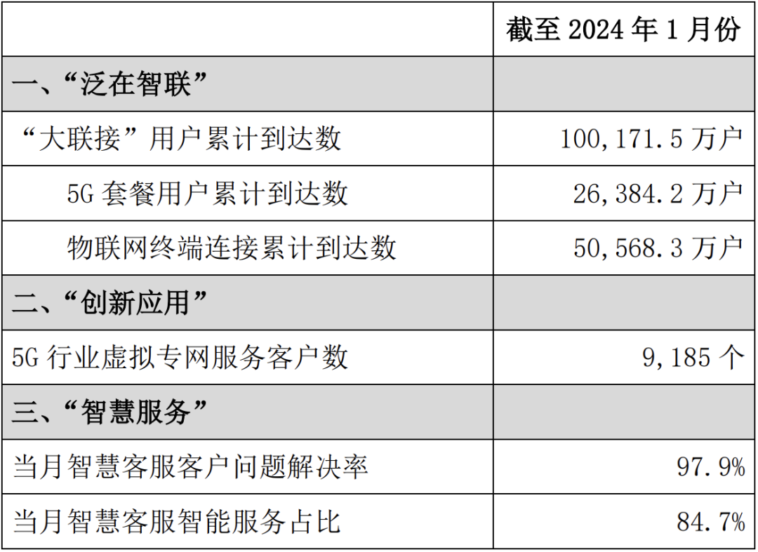 中國聯通昨日公布了截至2024年1月底的運營數據。