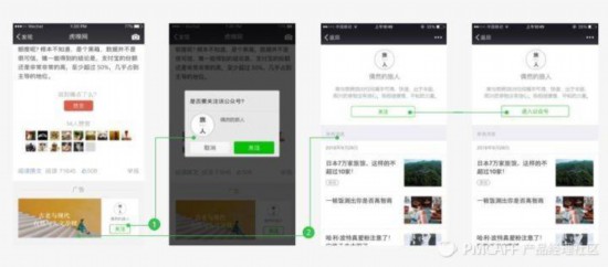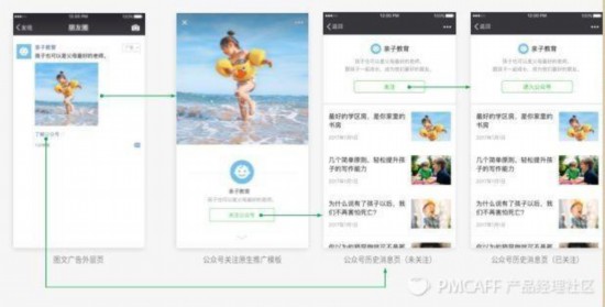 基于微信用戶的使用習慣,在朋友圈精準展示與用戶關聯度高的公眾號廣告,觸發點擊行為后,彈出公眾號介紹頁面及歷史發布文章,從而激發用戶點擊熱情;