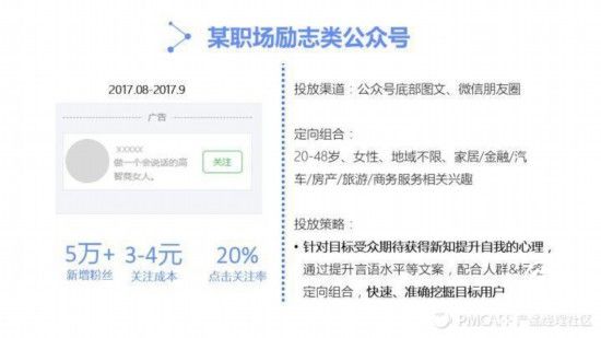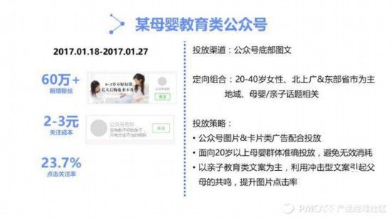 基于公眾號類型&目標粉絲群體特征,制作定制化素材,提升廣告吸引力和點擊率,進而提升關注轉化率。以下之前操刀過的微信加粉運營的案例,分享給大家:
