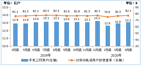 2019-2020年4月末手機上網用戶情況