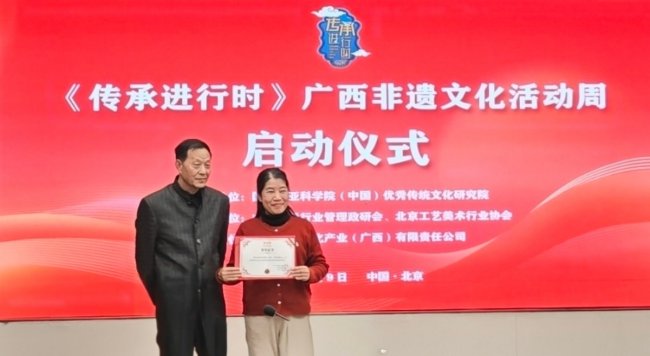 中國流通行業管理政研會副秘書長陳四海說,廣西作為多民族聚居區,積淀了燦若星河的非物質文化遺產,壯錦、六堡茶、煨酒釀造、民族醫藥等非遺項目,是壯鄉各族人民智慧的結晶,更是中華優秀傳統文化的重要組成部分。此次在北京舉辦非遺文化活動周啟動會,讓廣西非遺走進首都、登上更大舞臺,既是展示廣西文化魅力的重要契機,也為京桂兩地文化交流、非遺保護經驗互鑒提供了寶貴平臺,希望各位傳承人以此次活動為契機,講好廣西非遺故事,讓更多人領略壯鄉文化的獨特韻味。