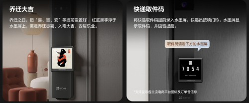 而在細節體驗上,螢石更將情緒關照落到實處。針對網購時代的高頻退貨需求,用戶可在 APP 預設取件碼,當快遞員上門按響門鈴時,水墨屏將自動顯示取件碼,讓原本繁瑣的退貨流程,變得便捷又充滿儀式感。