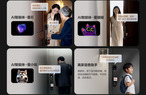 如果說水墨屏把手重構了智能鎖的“視覺情感”,那么Y5000FVX Ultra搭載的 7 種 AI 智能體,則賦予產品“交互情感”的生命力。螢石深知智能設備的溫度不僅源于外觀,更來自于與用戶的深度對話,因此為用戶打造了覆蓋多元風格的智能體矩陣。