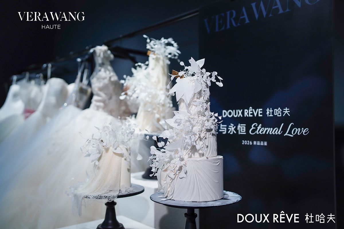 當頂級高定婚紗遇上極致藝術甜品,一場跨越視覺與味覺的感官對話就此展開。12月18日,享譽全球的婚紗品牌 VERA WANG HAUTE 于上海旗艦店盛大舉辦 2026春夏系列新品預覽。中國藝術甜品 領軍品牌 杜哈夫Doux Rêve 再度受邀攜手VERA WANG HAUTE呈現SS2026新品預覽:一場關于“愛與永恒”的藝術共鳴,作為官方獨家甜品合作伙伴,以“愛與永恒”為題,呈現了一場融合高定美學與匠心風味的藝術盛宴。