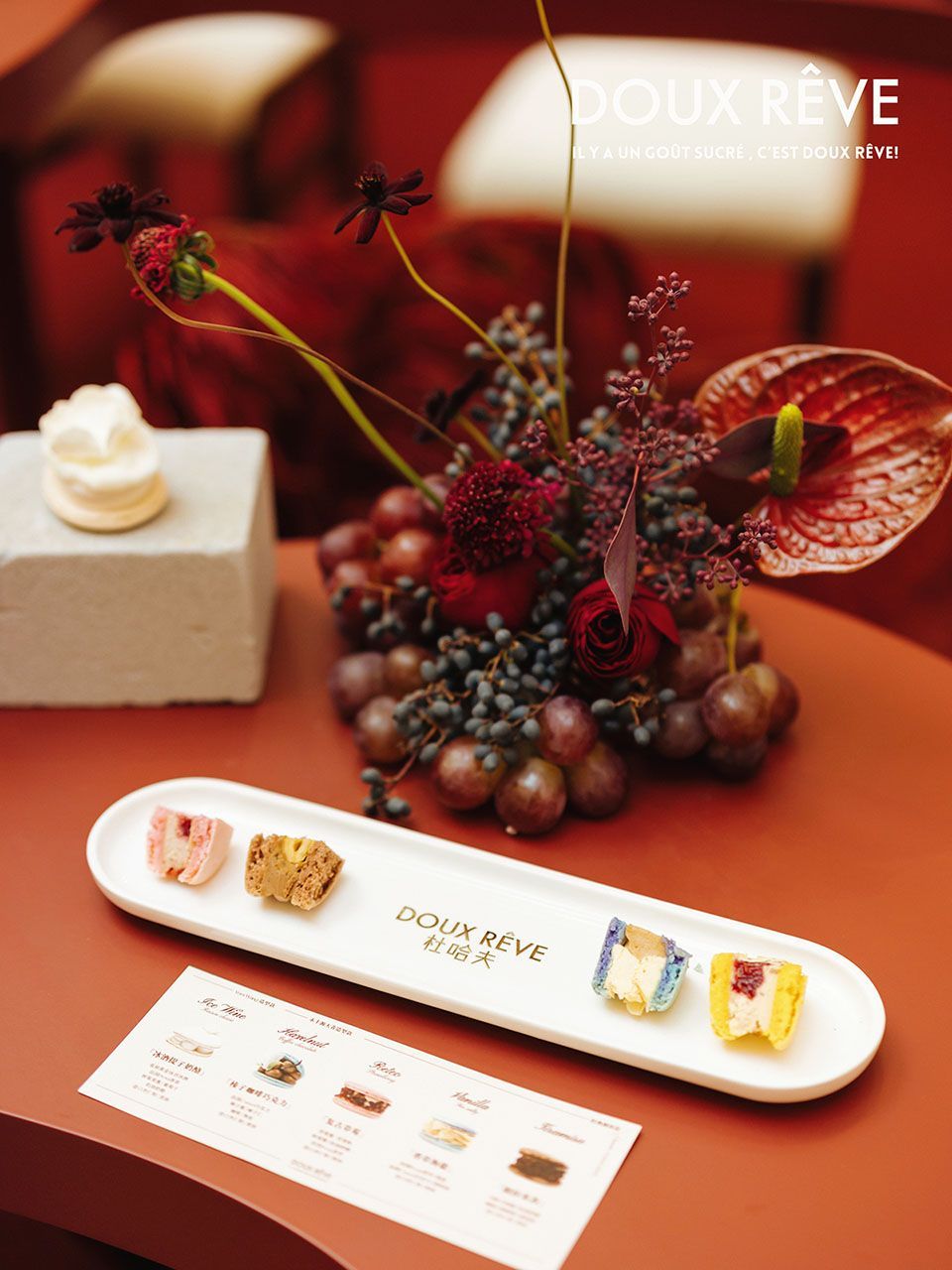 為期一周的活動中,杜哈夫不僅發布了5款藝術級馬卡龍新品,更與其 “ 品牌摯友 ”——VERA WANG、國瓷永豐源、張裕、法國 PROVA以及法國賽夢CéMOI,共同完成了一場跨越國界與領域的感官對話。